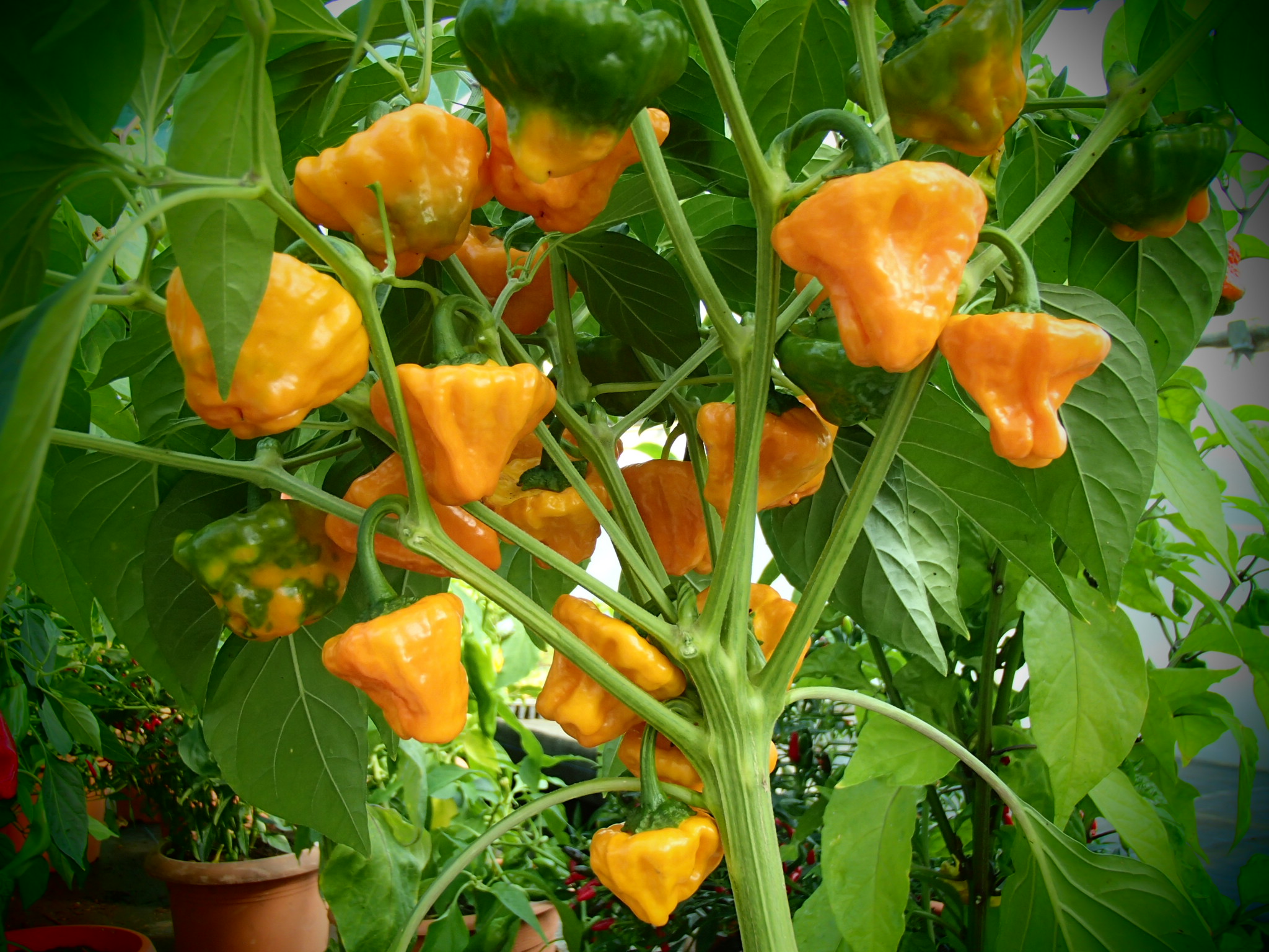 kräftige Pflanze, fruchtiges Aroma, sehr scharf, es können auf einer Pflanze 5 verschiedene Fruchtformen auftreten, aber alle höllisch scharf