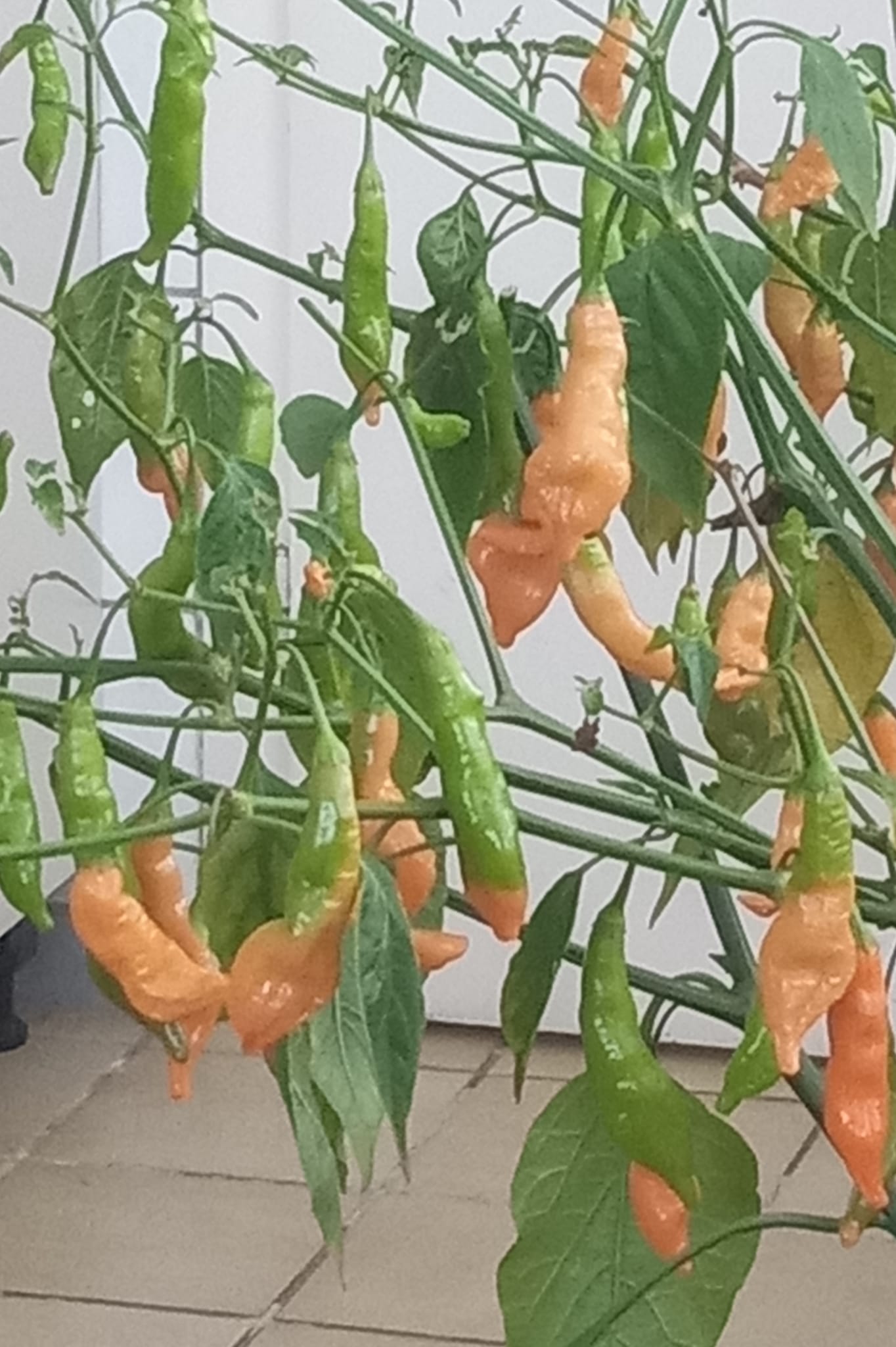 Hochwachsende Sorte mit ausladender Krone, sehr ertragreich, Massenträger. Früchte pfirsichfarben und 7-10 cm lang, süss-tropischer Geschmack mit noch erträglicher Schärfe